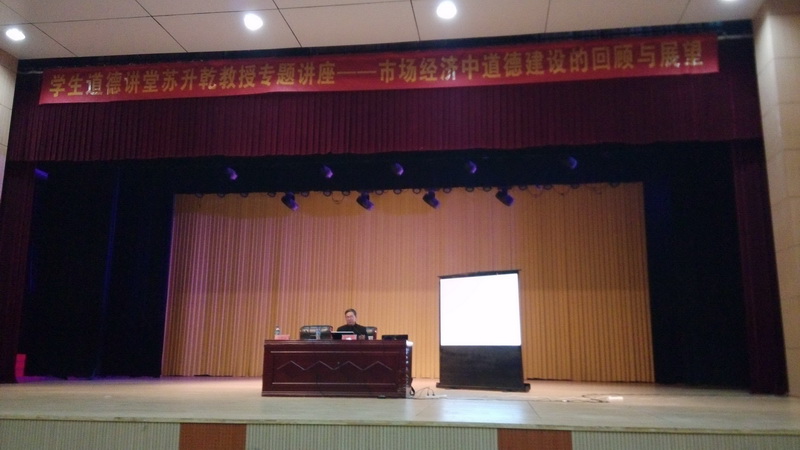 讲座由公司党总支书记何昊宸主持。苏教授就关于市场经济中道德建设三个方面为在座师生进行讲解:首先,他指出,社会主义市场经济必须利用价值规律;其次,在价值观多元化的今天,我们应该有正能量的主旋律和主导面来促进社会主义道德建设;最后,苏教授提出三个"离不开",即道德建设离不开时代的舞台、离不开社会的规律和离不开生长的约束。