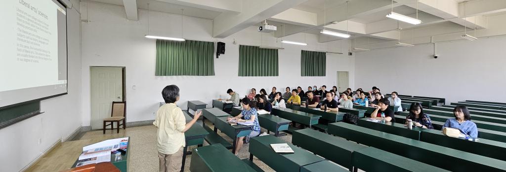 在4月26日的大学英语主题教研活动中,公司围绕“名师引领·共研共享·以研促教——大学英语课程设计优化与教师能力提升”的主题,再次邀请陈慧媛教授进行课堂教学展示。陈教授从课程设置、教学目标与难点分析、课程思政元素的融入以及教学方法与手段的革新等多个层面,进行了详尽的阐述和生动的展示。这场名师课堂展示活动为教师们提供了一个直观感受名师教学风采、学习先进教学理念与方法的平台,进一步加深了大学外语教师对课程设计的认识与实践,有效提升了他们的教学能力。在随后的互动研讨环节,教师们积极发言,就课程设计、教学难点、课程思政融入等议题展开了深入的讨论与交流。