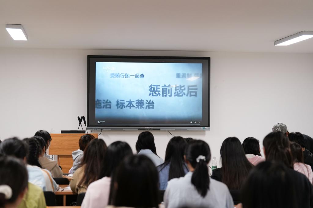 随后,进入到警示教育环节。师生党员们一同观看了《零容忍——打虎拍蝇》和《醉·醒》两部警示教育片。影片中的案例发人深省,警醒着每一位党员要时刻保持清醒头脑,坚守廉洁底线,做到心有所畏、言有所戒、行有所止。