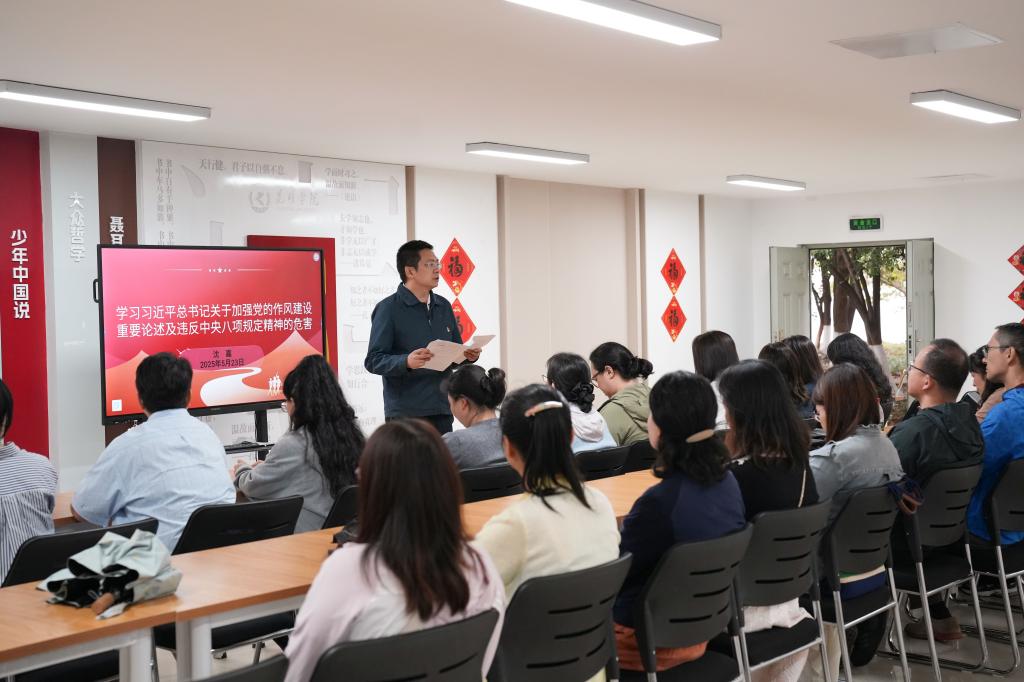首先,公司党委书记沈嘉发表活动致辞,他着重强调了廉政建设的重要性,并详细阐述了本次主题党日活动的背景及其开展意义。接着,他以“学习习近平总书记关于加强党的作风建设重要论述及违反中央八项规定精神的危害”为主题,重点围绕学习领会和贯彻执行中央八项规定及其实施细则精神,深入探讨了加强党性修养、开展作风建设的重要性和实践路径开展廉政专题党课。同时,沈书记结合公司工作,对如何贯彻落实中央八项规定精神,推进作风建设常态化、长效化提出具体要求。