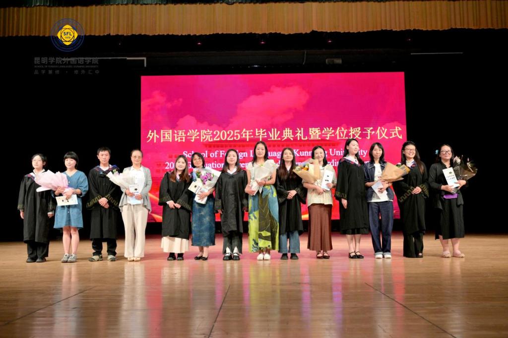 毕业生代表向班主任、辅导员、学业导师献花,感谢老师们对2025届毕业生无微不至的关怀和不辞辛苦的付出。