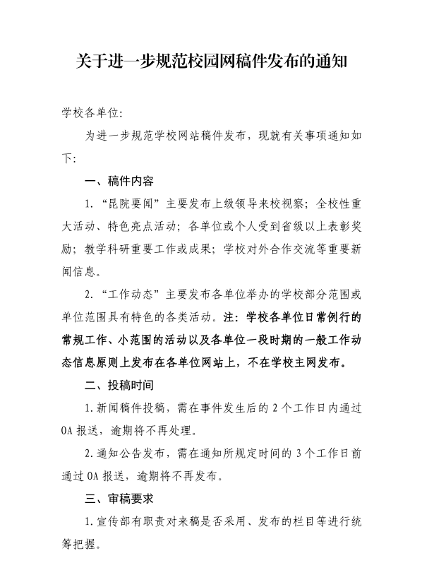 关于进一步规范校园网稿件发布的通知