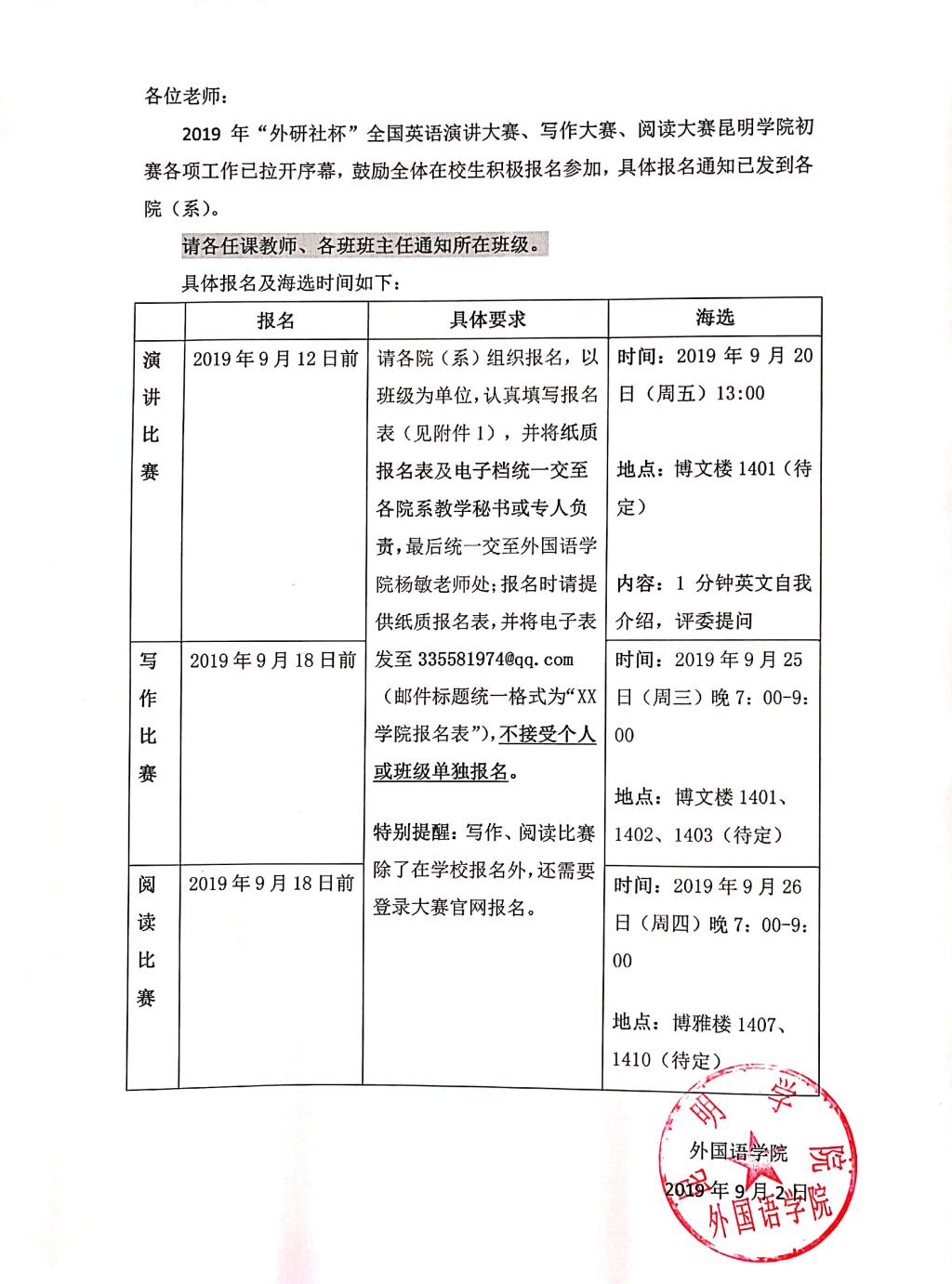 2019年“外研社杯”全国英语演讲、写作、阅读大赛通知