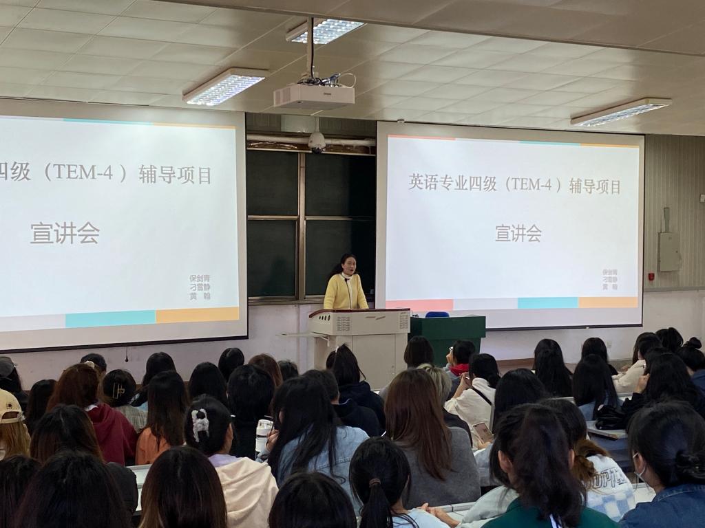 为帮助英语专业同学进一步了解英语专业四级考试,把握考试规律,明确备考方向,提高备考效率,11月22日公司于博识楼2003教室举办了2021级英语专业四级(TEM-4)考试宣讲及动员会,bevictor伟德经理陈静以及专业四级辅导团队任课教师保剑青、刁雪静、黄翰出席了此次宣讲。bevictor伟德2021级英语专业、2022级英语专升本共300余名员工聆听了此次宣讲。