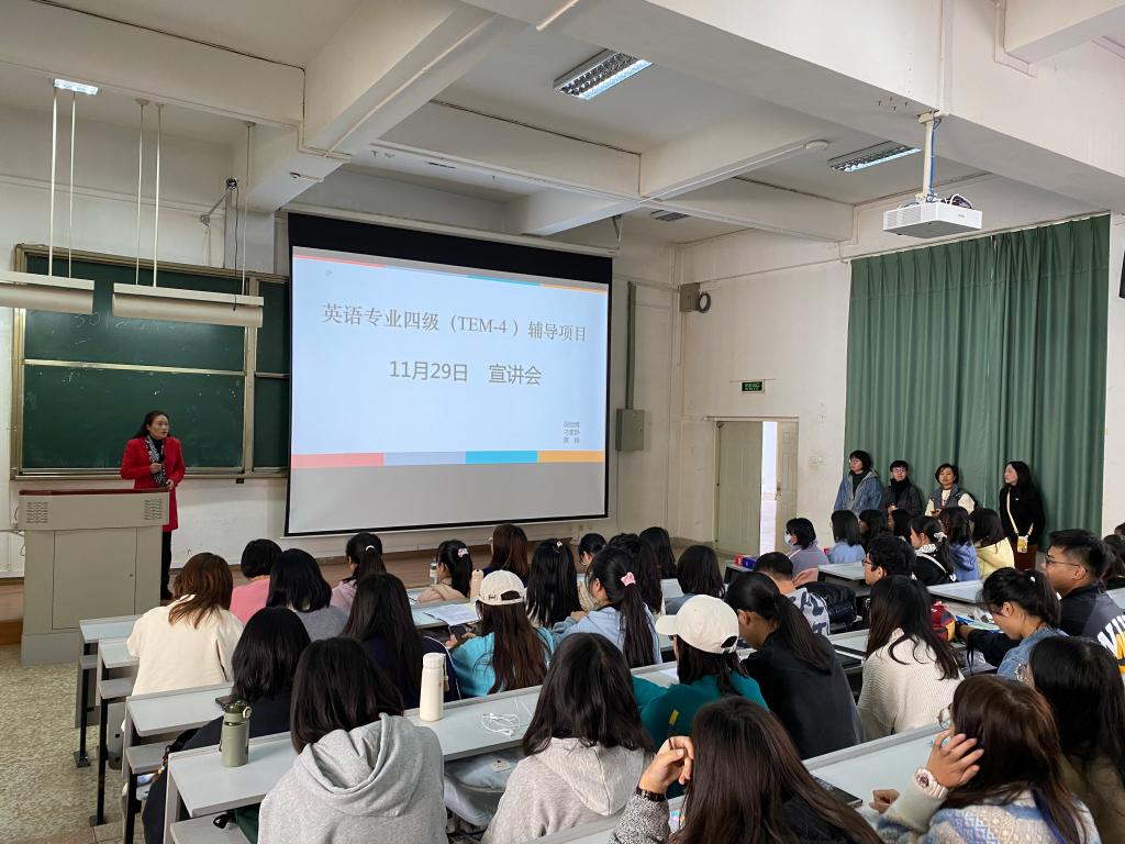 11月29日,bevictor伟德于博识楼1001教室举办了2022年英语专业四级(TEM-4)考试宣讲及动员会,公司领导及辅导教师出席了此次动员会。bevictor伟德2020级英语专业、商务英语专业200余名员工聆听了此次宣讲。