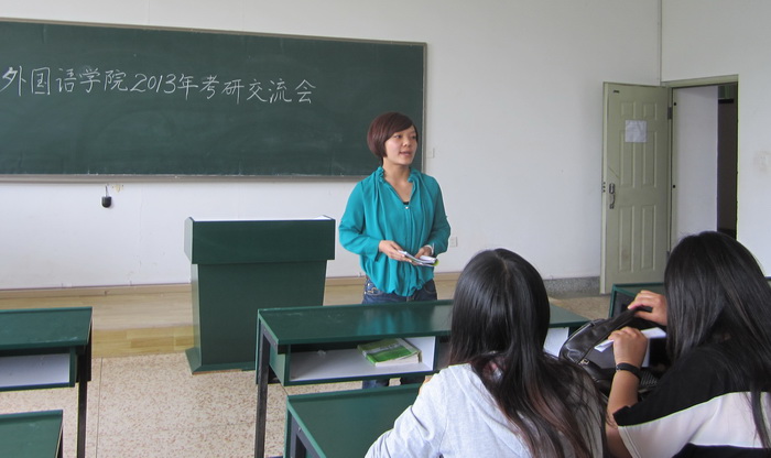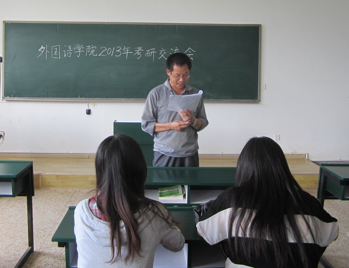 杨为宗老师宣读了公司关于对2013届考研上线员工及相关单位进行奖励的决定,介绍了参加会议的2009级考取研究生的同学代表。英语2009级3班考取武汉大学(985院校)法律硕士的李娇同学、英语2009级3班考取上海外国语大学(211院校)汉语国际教育的李娟娟同学、英语2009级3班考取云南师范大学学科教学(英语)的刘龙霞同学、英语2009级4班考取云南大学(211院校)翻译硕士的方蕊同学,分别为低年级准备考研或者对考研感兴趣的同学介绍跨专业考研、少数民族高层次骨干人才培养计划考研、享受少数民族照顾政策学科教学(英语)考研、翻译硕士考研的经验。随后,4名同学回答了低年级同学提出的报考、笔试和复试准备等问题,进一步与低年级同学分享自己考研的经验。