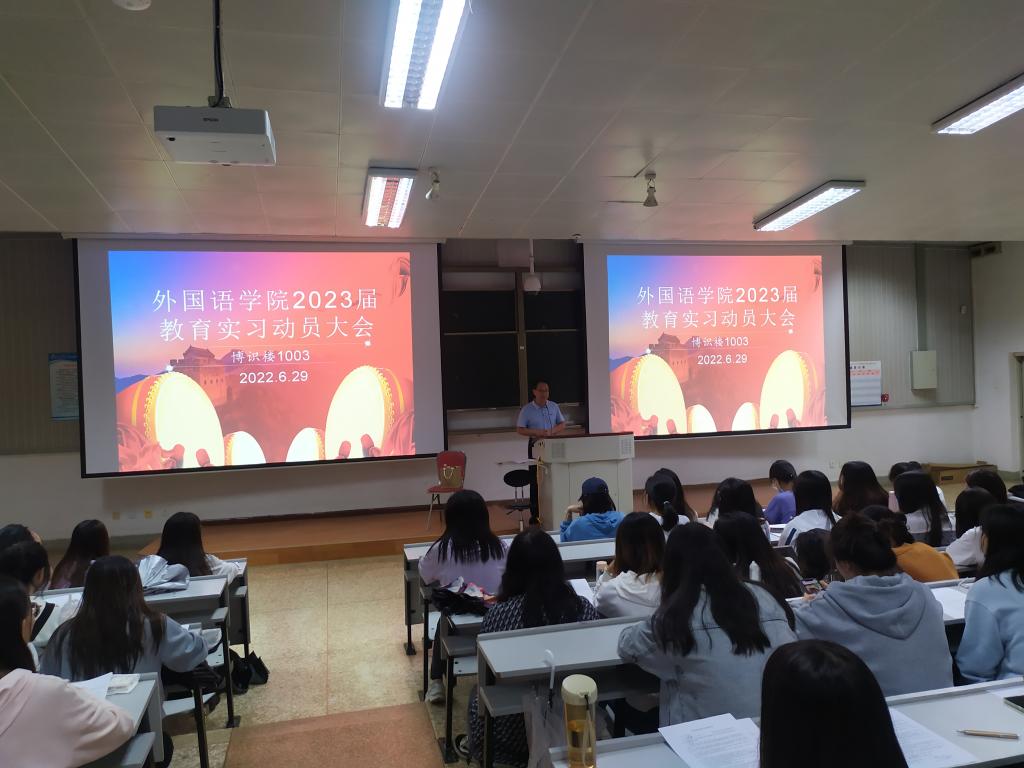 6月29日,bevictor伟德在博识楼1003召开2023届员工教育实习动员大会。 2019级英语专业及2021级英语专升本共244位同学及班主任参加了本次大会。公司杨斌书记、陈静经理、马慧副经理和翟喆副书记出席大会并进行动员讲话。大会由公司英语教育实习负责人刁雪静老师主持。