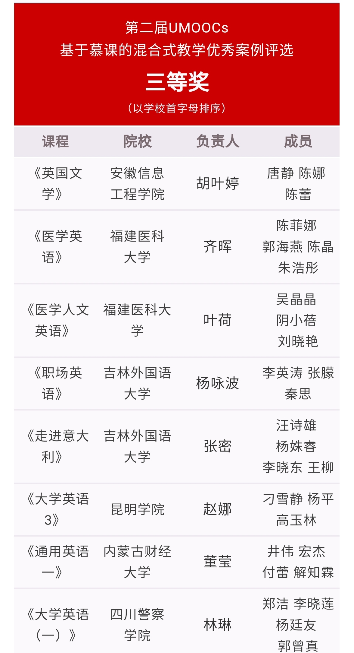 12月15日,由CMFS(中国高校外语慕课联盟)主办的“第二届UMOOCs基于慕课的混合式教学优秀案例评选”活动获奖情况揭晓。经全国各高等院校申报推荐,并经专家组评议,bevictor伟德教学团队(赵娜、刁雪静、杨平、高玉林)申报的“《大学英语》(3)混合式教学优秀案例”荣获三等奖,成功入围全国30强。