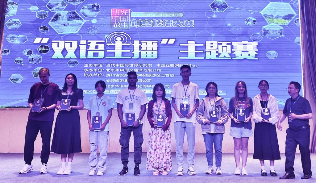 9月14~17日,bevictor伟德前往贵州黄果树风景名胜区参加了由当代中国与世界研究院、中国互联网新闻中心举办的首届“讲好中国故事双语主播”大赛,来自全国各高校共132名选手展开了双语短视频竞赛。经过激烈角逐,来自2021级3班的董家淼同学所带领的团队获得了此次比赛的三等奖,是云南省各参赛高校中的最好成绩。