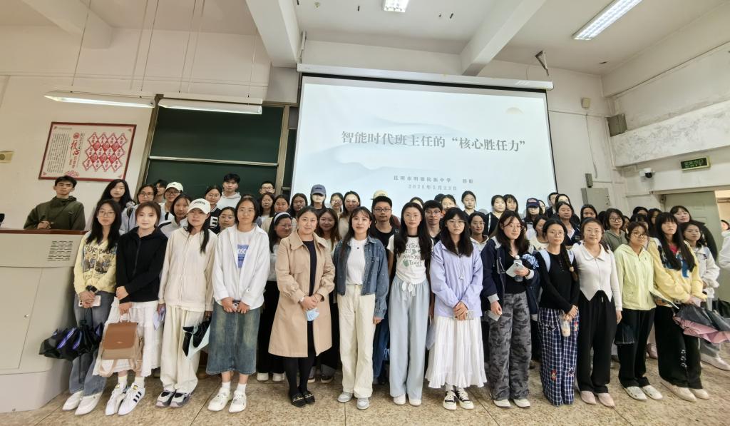 2025年5月23日,由bevictor伟德组织的名师讲坛第10讲在博识楼2001教室顺利举行。本次讲座以“智能时代班主任的核心胜任力”为主题,特邀昆明市明德民族中学优秀教师孙昕担任主讲人,英语专业2022级全体师范生共同参与学习。