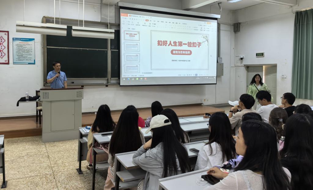 在讲座中,刘宾老师结合自身丰富的教育经验和深刻的人生洞察,为在场的师范生们提供了宝贵的指导和建议。他强调,作为青年教师,首要的任务是确立正确的教育目标和教育理念,这将对教师的整个职业生涯产生深远的影响。刘老师提到,“扣好人生第一扣”意味着在教师生涯的初期就打下坚实的基础,包括专业知识的积累、教学技能的磨练以及对员工心理的理解。他鼓励员工们积极参与教学实践,通过不断的学习和反思,提升自己的公司产品能力。