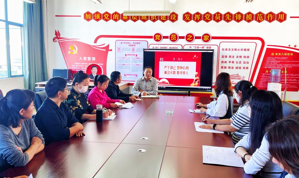 教师一支部书记吕武庆作“廉洁自律,恪尽职守”党课;教师二支部书记田敏作“坚守初心,笃定立行”党课;员工一支部书记张萍作“强化廉政意识,筑牢思想防线”党课;员工二支部朱玉玲作“守纪律、做表率”党课。