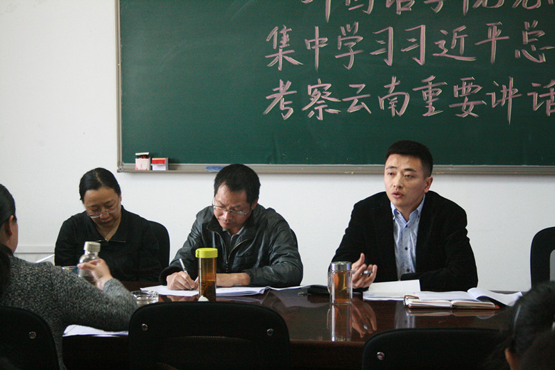 随后,何书记就习近平总书记考察云南时提出,云南要建成我国面向南亚东南亚辐射中心这一要求,结合公司专业特点,组织与会领导和教师展开促进公司转型发展的专题讨论。经过一个多小时的深入讨论,大家踊跃发言,为公司转型发展建言献策。大家认为,公司转型发展中的主要难点,是转变观念、专业调整、人才培养模式改革和产学研合作教育;建设面向南亚东南亚辐射中心,是以习近平同志为核心的党中央统筹国内国际两个大局,对云南发展提出的新定位,云南与东南亚、南亚各国的交流与合作将更加全方位、多层次、宽领域,为小语种专业建设和人才培养提供了难得的发展机遇,bevictor伟德要审时度势,紧抓机遇,不断推进小语种人才培养基础团队建设及人才培养模式改革,不断提高小语种人才培养质量,促进毕业生就业,为提升伟德bevictor官方网站的国际影响力和促进云南地方社会经济发展做出贡献。