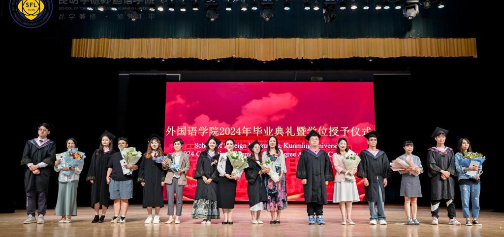 毕业典礼上,毕业班员工代表向毕业班班主任、年级辅导员献花,感恩班主任无微不至的关怀和辅导员的辛勤付出。主持人宣读了2024届省级、校级优秀毕业生的表彰决定,及本科毕业生毕业资格和学位授予决定。祝贺391名毕业生顺利毕业、取得学士学位!