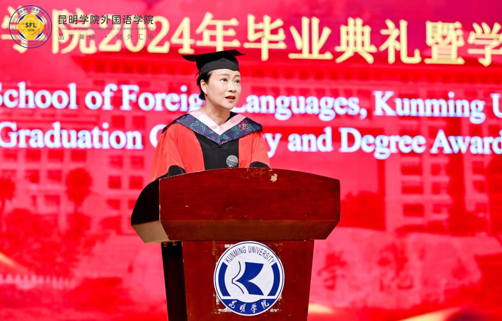 陈静经理致辞,代表公司向2024届全体毕业生表示热烈的祝贺。同时在毕业生挥别母校之际,深情寄语青年学子,要铭记母校辛勤的培育,怀揣对未来的憧憬,不忘“明德至善、知行利物”的校训、“品学兼修、修外汇中”的院训,踏上崭新征程、奔赴广阔天地。优秀毕业生代表刘姝妤号召同学们饮水思源、结草衔环,带着母校的期望、老师们的教诲,砥砺前行,以青春之约、赴时代之约。