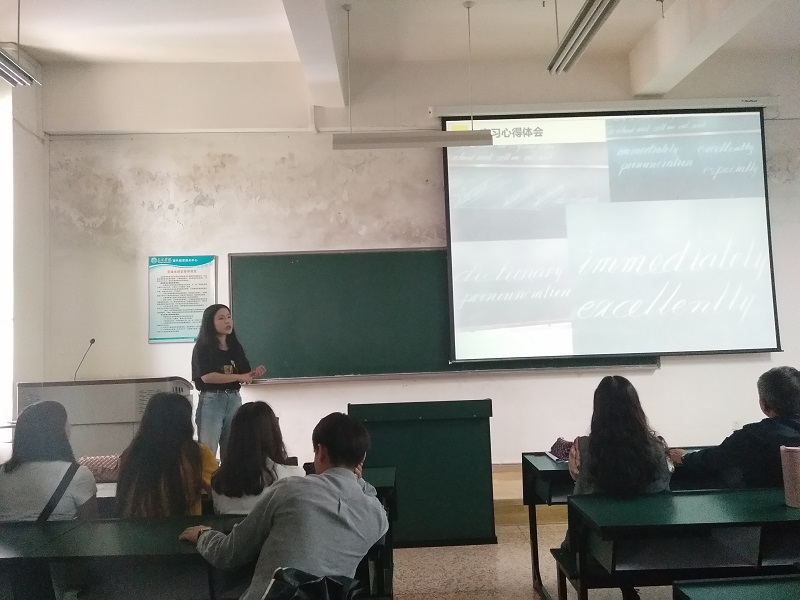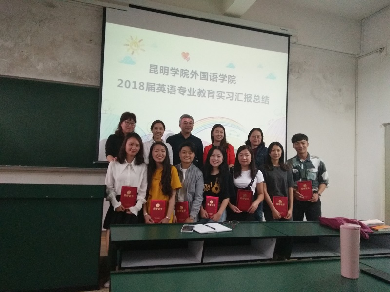 紧接着便迎来了优秀实习生代表们的精彩分享。他们准备充分、内容翔实,交流非常深刻而有意义。分享内容十分广泛,涉及到听课、备课、授课、实习日常生活及对同学们的建议等诸多方面,分享过程中教室里高潮迭起、掌声热烈。代表们的分享反映出2018届同学在教育实习中认真严谨、收获颇丰,他们呈现的丰富多彩、充实愉悦的实习生活令下一届同学兴致盎然,满怀憧憬。实习生代表们分享结束之后,由出席本次会议的公司教师代表为优秀实习生颁奖并合影留念。