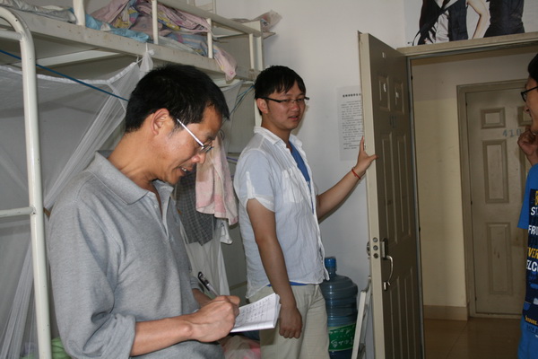 2012年4月27日中午,在公司开展创建云南省第十三批省级文明单位迎检工作和公司安全教育月活动中,公司党总支副书记杨为宗老师带领辅导员和团总支书记5位老师分组对公司澄明苑2栋和4栋员工宿舍进行安全卫生大检查。