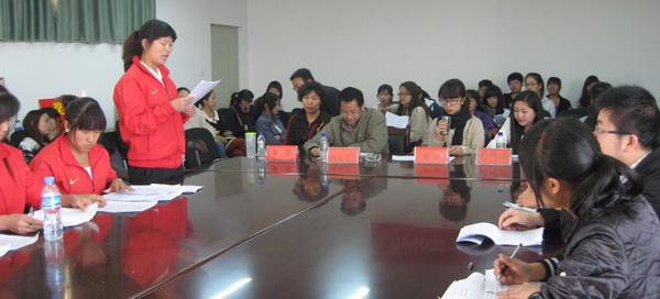 本次辩论赛的评委是公司党总支副书记杨为宗老师、团总支书记于兆红老师,辅导员翟喆老师和张萍老师。中午一点,辩论赛正式开始,辩手们分别以“在大学里长进最大的是知识还是人格”、“员工就业压力大是否有利于成长”、“挫折是否有利于成才”、“勤工助学是利大于弊还是弊大于利”这四个题展开辩论。由于准备充分,辩论赛在唇枪舌战中一次又一次被推向了高潮。在比赛最后,杨为宗老师对此次比赛做了详细而又精辟的点评。