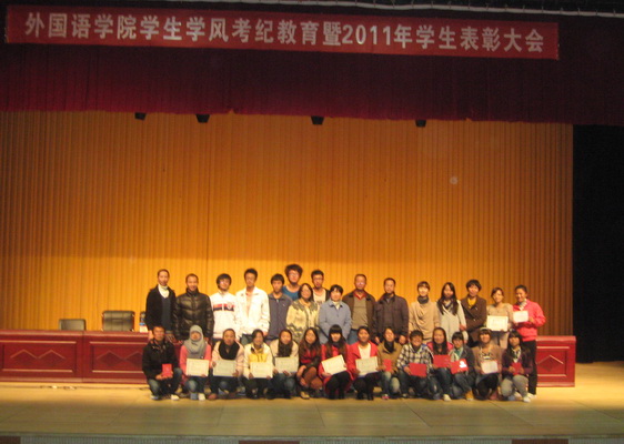 会议首先由主持工作的副经理林德福老师就加强学风考纪教育作动员,党总支副书记杨为宗老师就奖学金、助学金的发放使用提出要求,主持工作的党总支副书记王文君老师宣读2011年员工表彰名单,公司领导和老师为获奖部分同学颁奖并授奖同学合影留念。