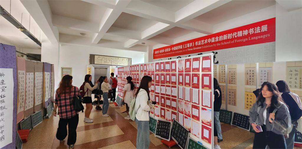 陈静经理对同学们的参展作品做出了高度评价和赞扬,并宣布本次书法展览正式开幕。她欢迎更多的同学对本次展览给予关注,同时预祝本次三笔字书法展览圆满成功。