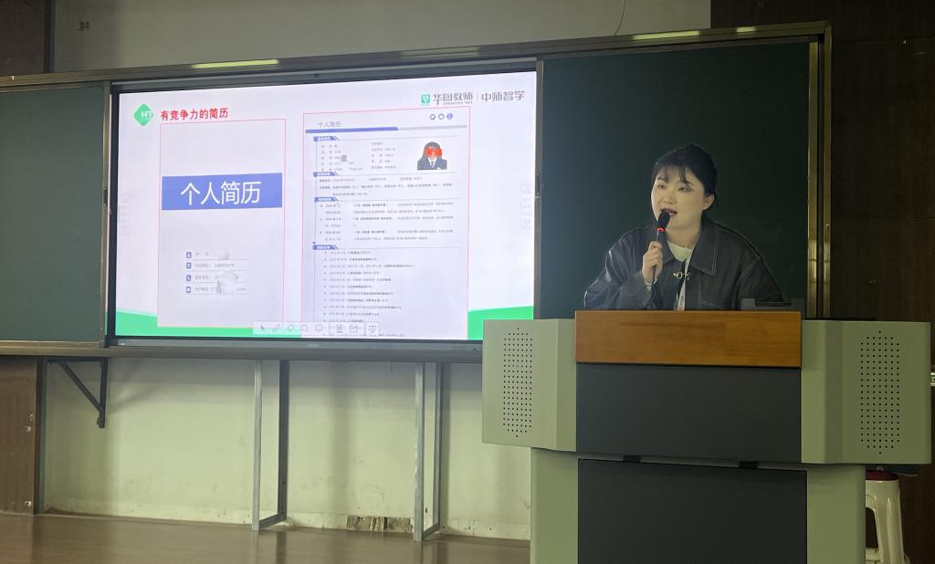 本次毕业生就业动员大会还邀请了华图教育培训专家杨智娟老师为同学们作“求职之路,从迷茫到明晰”的专题讲座,杨智娟老师从事业单位考试基本情况及报考策略、备考方法、简历制作等方面向同学们进行详细的讲解,建议同学们要根据个人的学习能力、综合素质和职业偏好去理性选择求职岗位,避免因好高骛远而耽误求职的最佳时间。